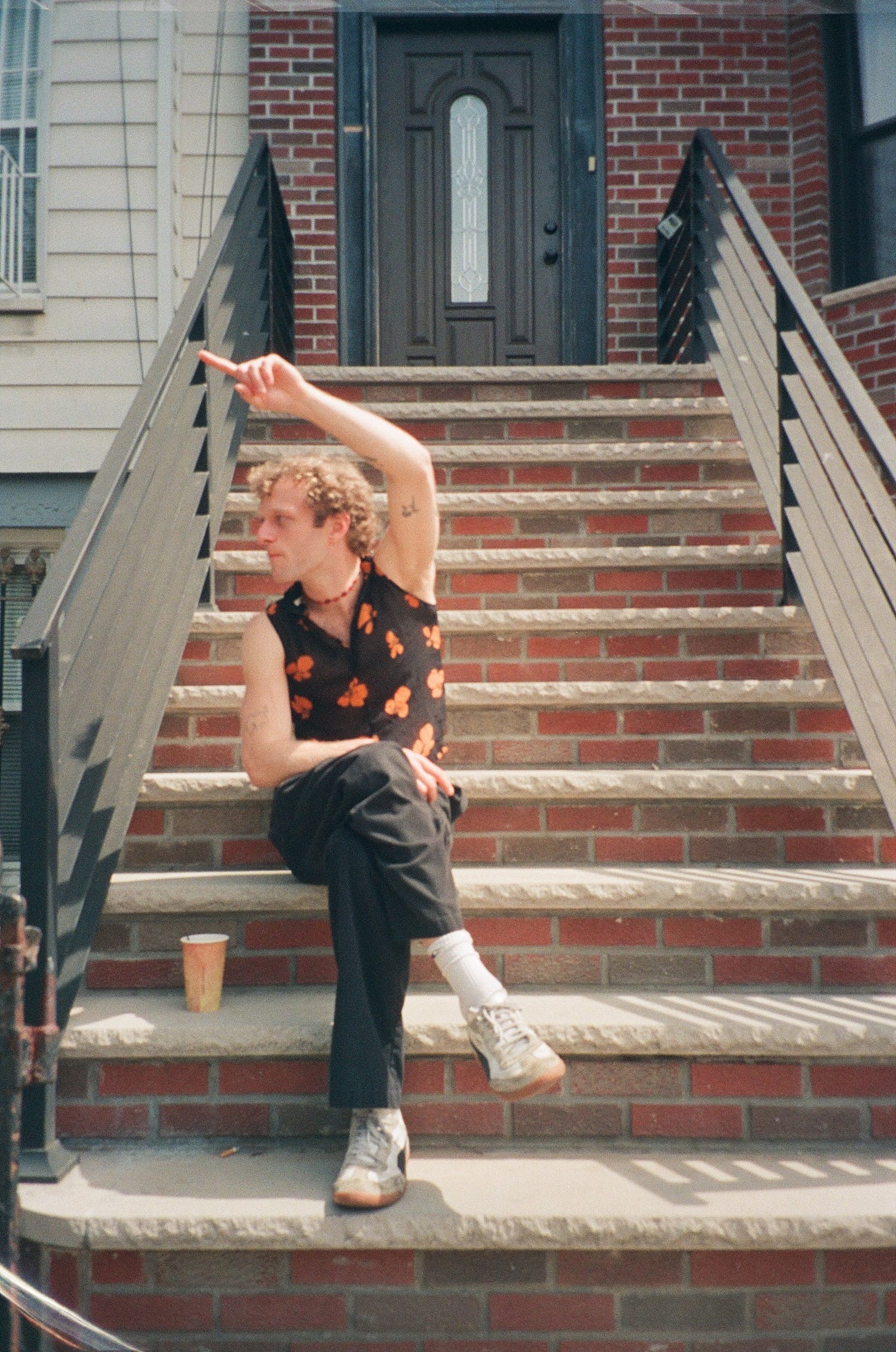Connor takes the stage at Baby’s All Right, sporting a piece of black fabric as a choker necklace, a black-and-white-checkered gingham shirt and scuba-diving wetsuit pants that he cut into shorts. “Nighttime OCD,” their set opener, begins and Connor’s eyes dart upward, his under-eyes lined with bright red pigment. His stare resembles that of an addict who’s just lost his latest fix to the wind.